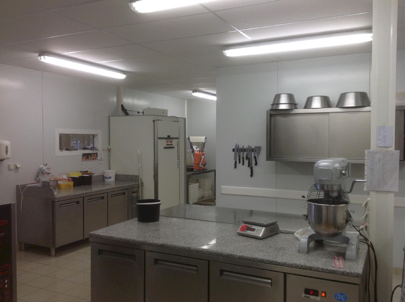 - l’installation des prises et alimentations nécessaires à la production (fours, chambres froides, équipements de préparation).