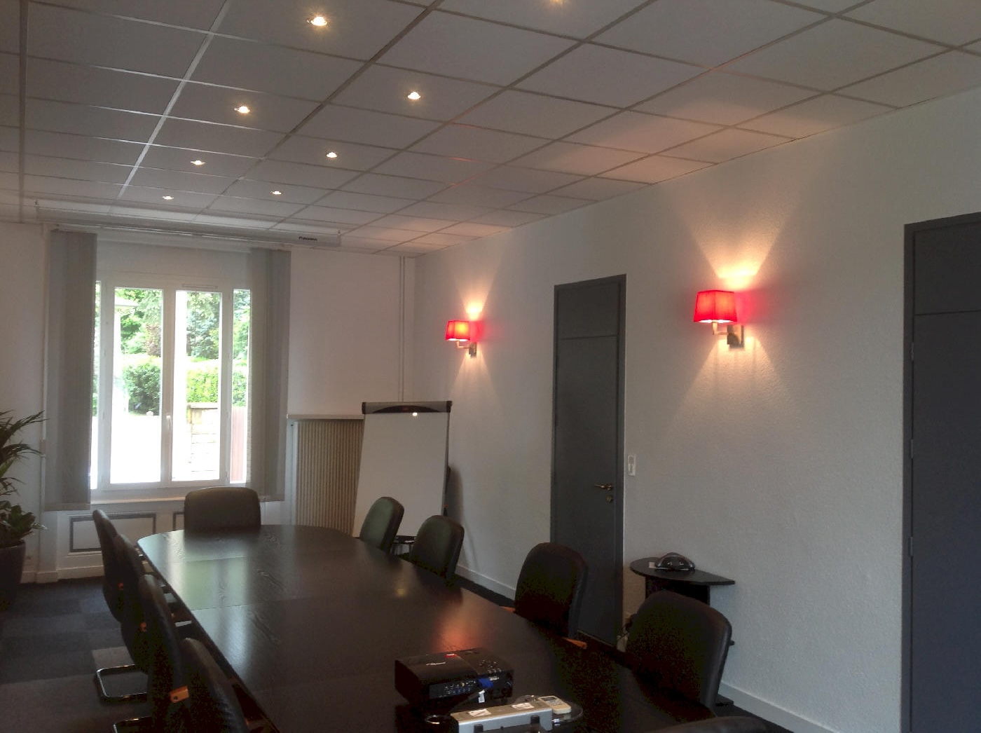 - création d’un nouvel éclairage pour la salle de réunion, les bureaux, le coin cuisine, les escaliers et l’entrée.